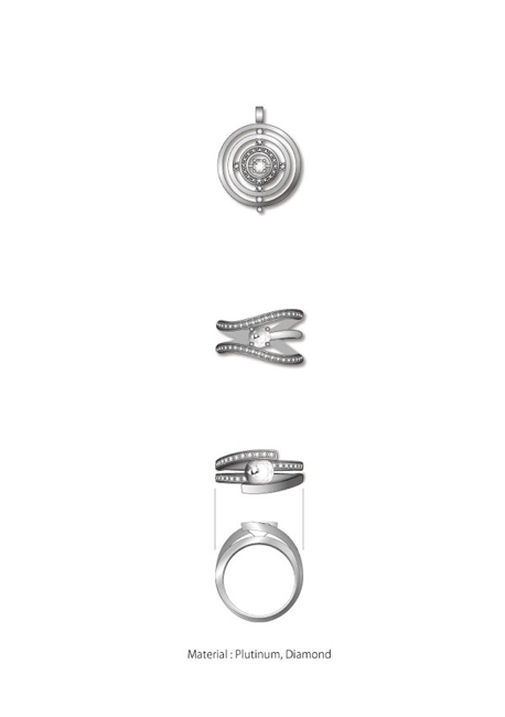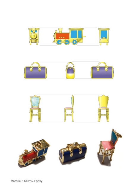 イメージをいただいてからのデザイン出し。立体的なチャームです。