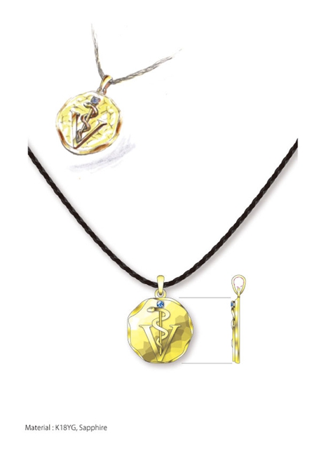 イメージをしっかりお持ちでしたのでヒアリングの後ラフ出しも2パターン程から選んでいただき修正。画像のネックの他にシリーズで別ネックとリングもご依頼いただきました。