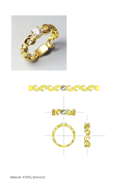 センターのダイヤをお持ちで、普段から身につけられるリングをご希望。お好みと石があまり高くならないように気をつけながらデザイン。